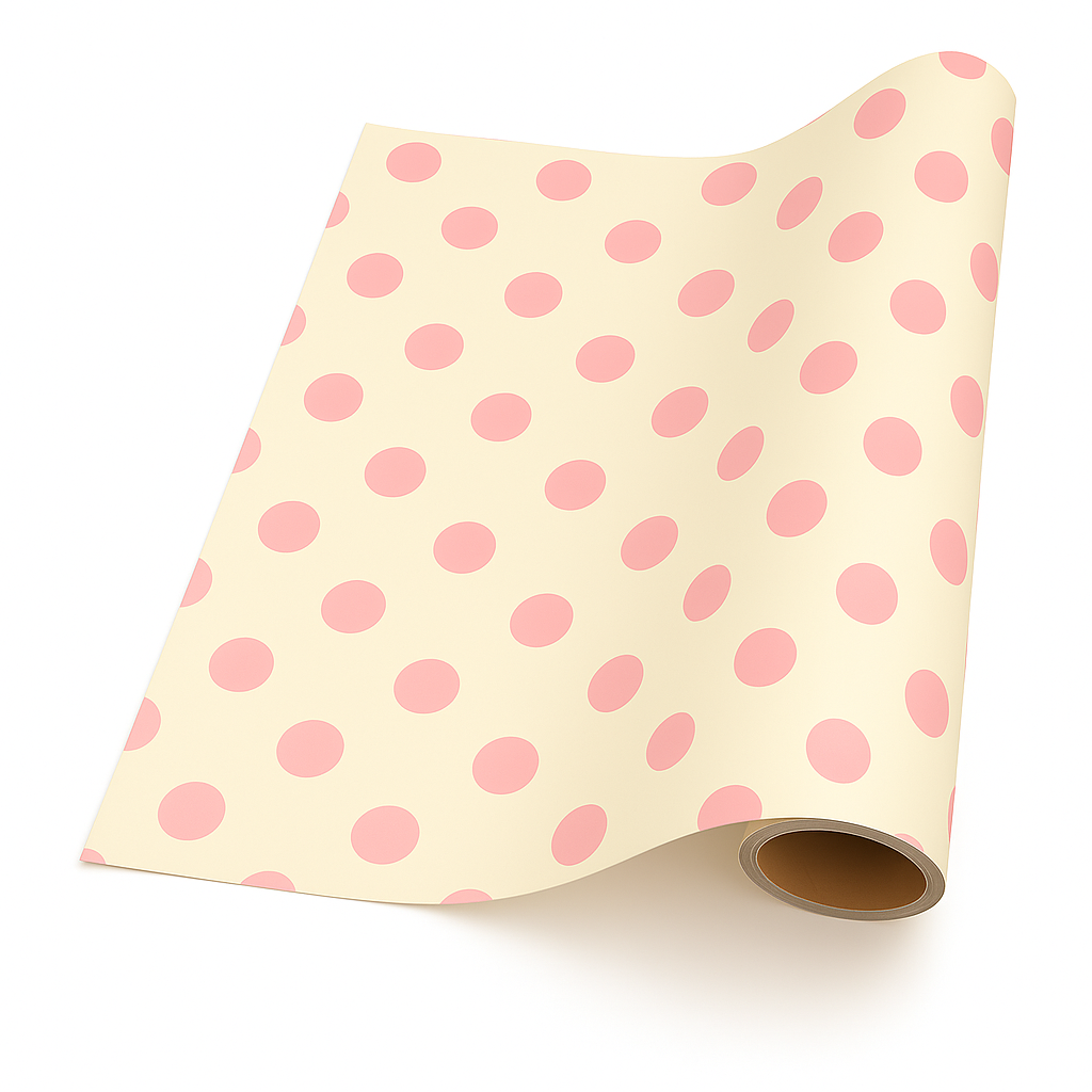 Cream with Pink Dot Giftwrap (5m x 50cm)