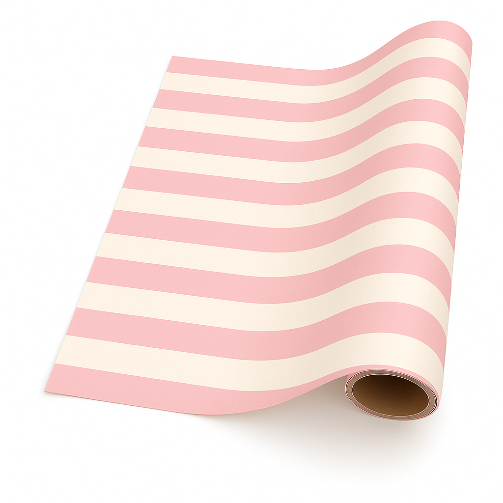 Cream with Pink Stripe Giftwrap (5m x 50cm)